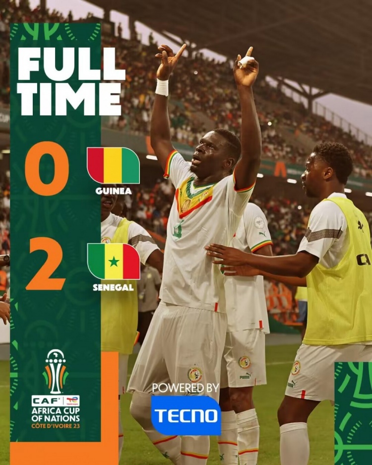 非洲杯C组第3轮,塞内加尔2-0击败几内亚,卫冕冠军塞内加尔3战全胜头名出线,几内亚4分小组第3出线。