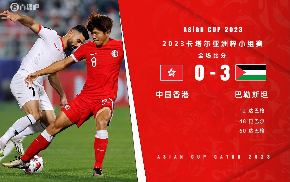 亚洲杯C组第3轮,中国香港0-3不敌巴勒斯坦,小组垫底出局,巴勒斯坦小组第三晋级。