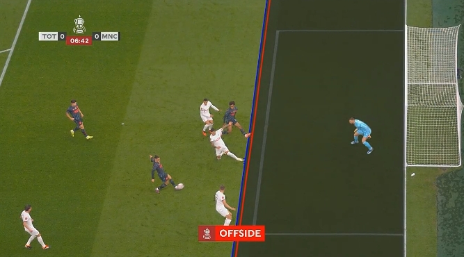 1月27日讯 足总杯第4轮,热刺对阵曼城。比赛第5分钟,沃克横传中路,阿尔瓦雷斯射门被扑,鲍勃插上补射破门!主裁判听取VAR后吹罚越位,进球无效!