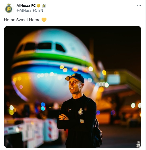 C罗已返回利雅得!利雅得胜利官推晒照:家,甜蜜的家