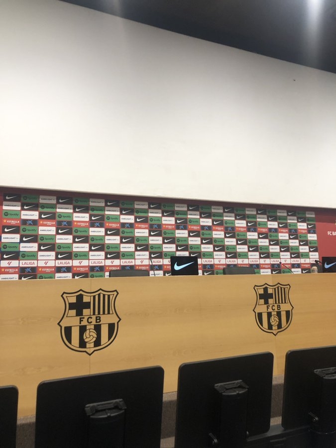 01月28日讯 西甲第22轮,巴萨3-5遭比利亚雷亚尔逆转。ESPN记者Samuel Marsden在推特上晒出巴萨赛后发布会空荡荡的现场图,记者表示:比赛已经结束了1小时20分钟
