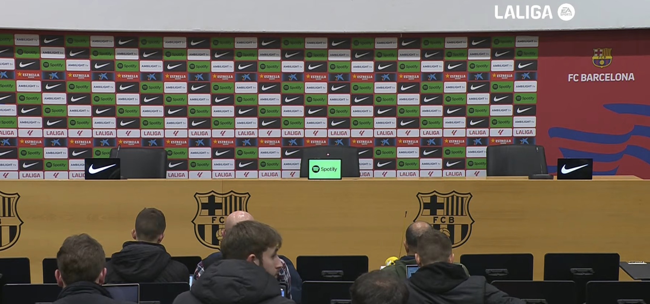 人呢?记者晒巴萨发布会现场图:比赛结束1个多小时,哈维还没来