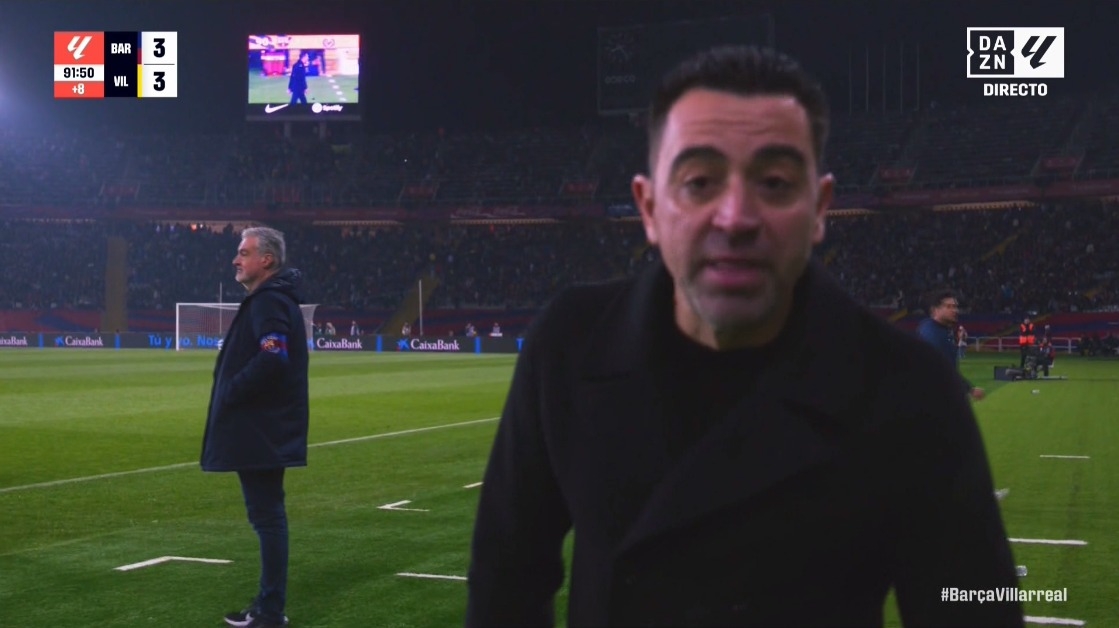 巴萨主帅哈维对此非常不满,他回头对着摄像头说了些什么,根据各西媒的报道,哈维说的是“UNA VERGÜENZA”(意为耻辱)。