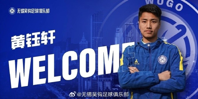 欢迎黄钰轩正式加盟无锡吴钩,期待新赛季在右边路有更出色的表现,奋发有为,一同成长!