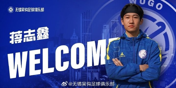 欢迎蒋志鑫加盟无锡吴钩,相信新的赛季蒋志鑫会在左边路迎来爆发,奋发图强,一路向上!