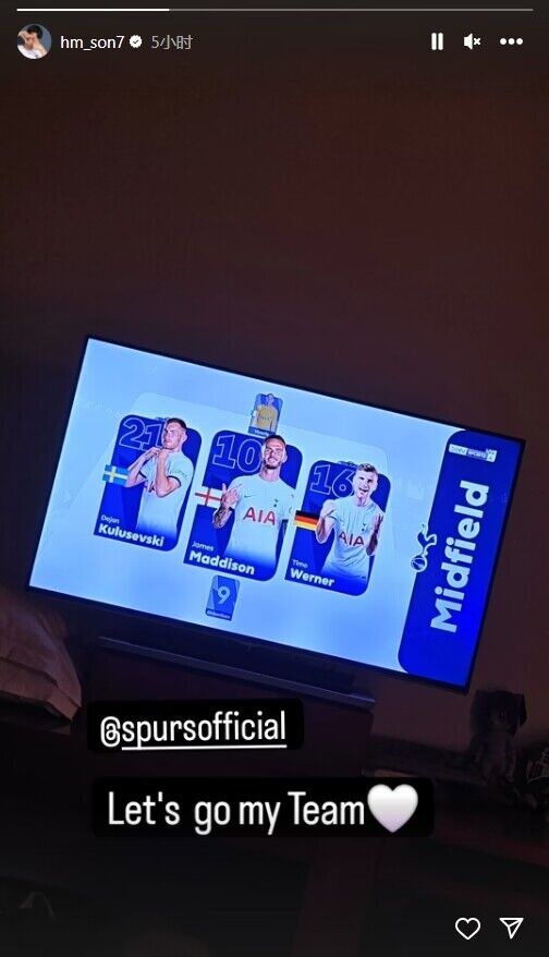 北京时间今天凌晨进行的英超第22轮比赛,热刺主场3-2战胜布伦特福德。征战亚洲杯的孙兴慜,也不忘观看俱乐部的比赛,他在社媒晒照并写道:“加油,我的球队!”