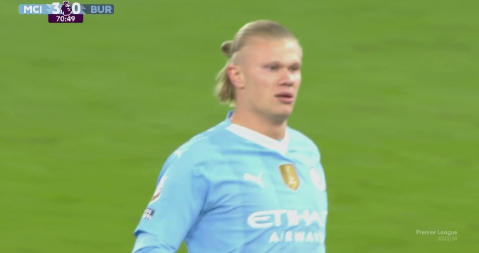2月1日讯 英超第22轮,曼城主场迎战伯恩利。比赛第71分钟,德布劳内被换下,哈兰德替补登场!自从12月10日哈兰德缺战卢顿后,哈兰德已经因脚部应力性反应缺阵近两个
