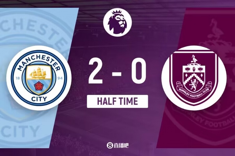 上半场补时2分钟。半场战罢,曼城暂2-0伯恩利。