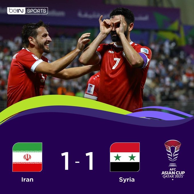 2月1日讯 亚洲杯1/8决赛,常规时间伊朗1-1叙利亚。