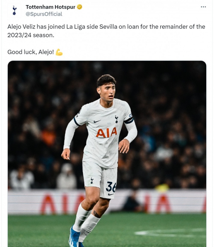 热刺官方发布公告,确认阿根廷中锋贝利斯被外租至塞维利亚,租借期限到本赛季结束。
