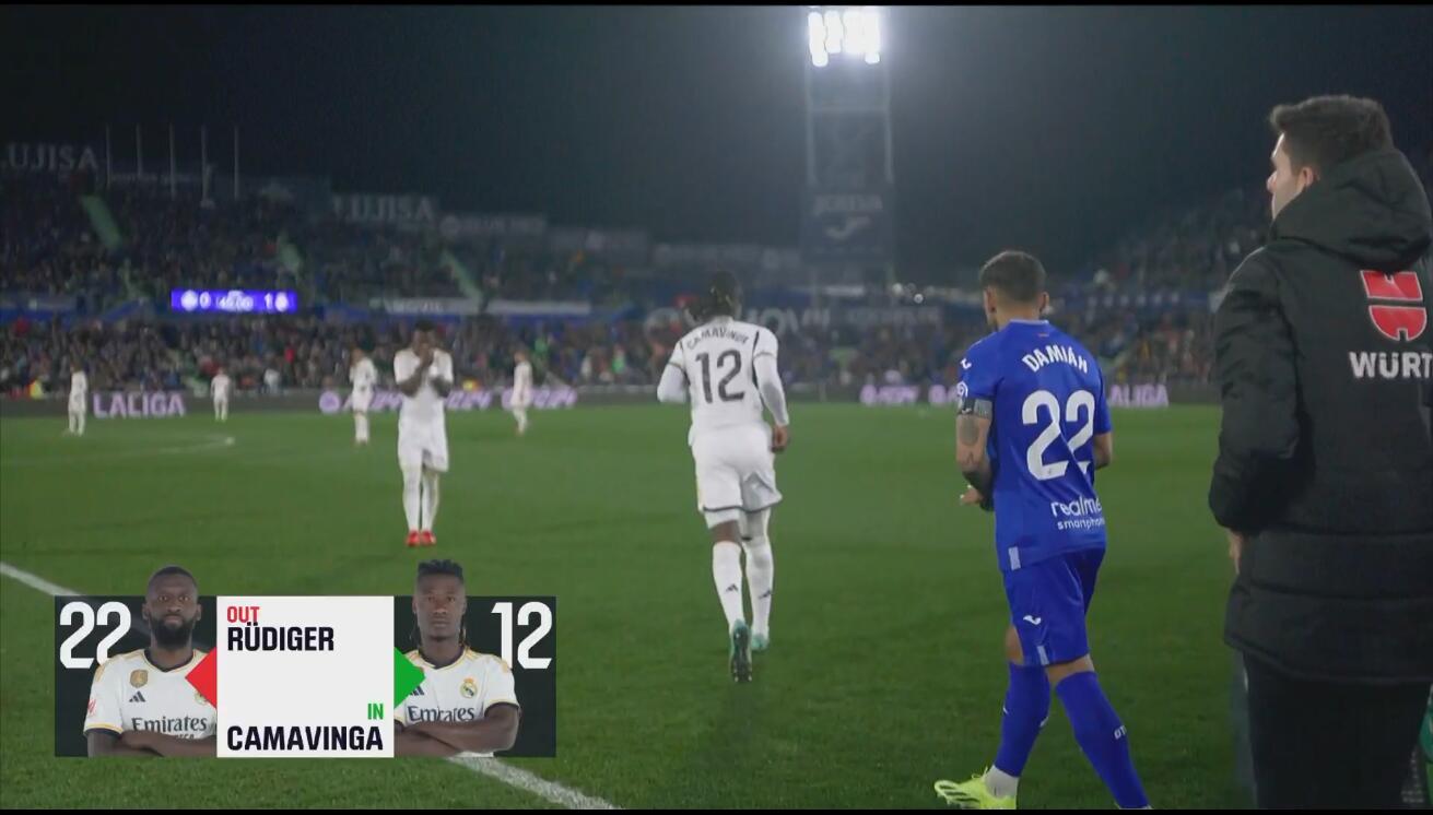02月02日讯 西甲第20轮,赫塔费主场vs皇家马德里,上半场比赛吕迪格在与格林伍德的对抗中受伤,下半场一开始被卡马文加换下。