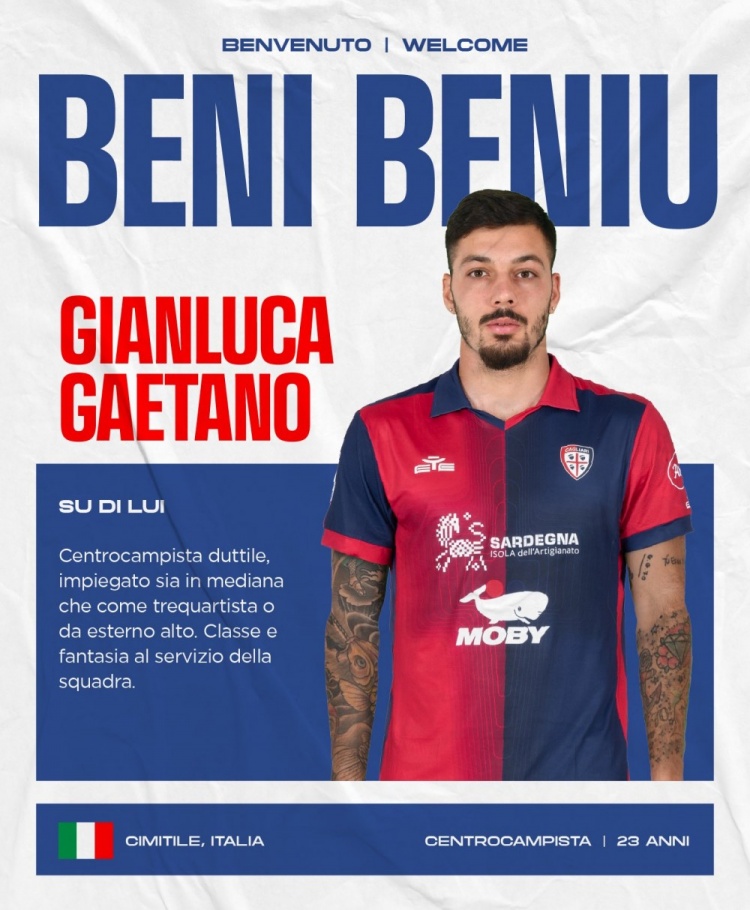 2月2日讯 官方消息,那不勒斯中场盖塔诺租借加盟卡利亚里,租期半个赛季。23岁中场盖塔诺和那不勒斯合同将在2025年结束,他本赛季上半赛季为那不勒斯出场13次,贡