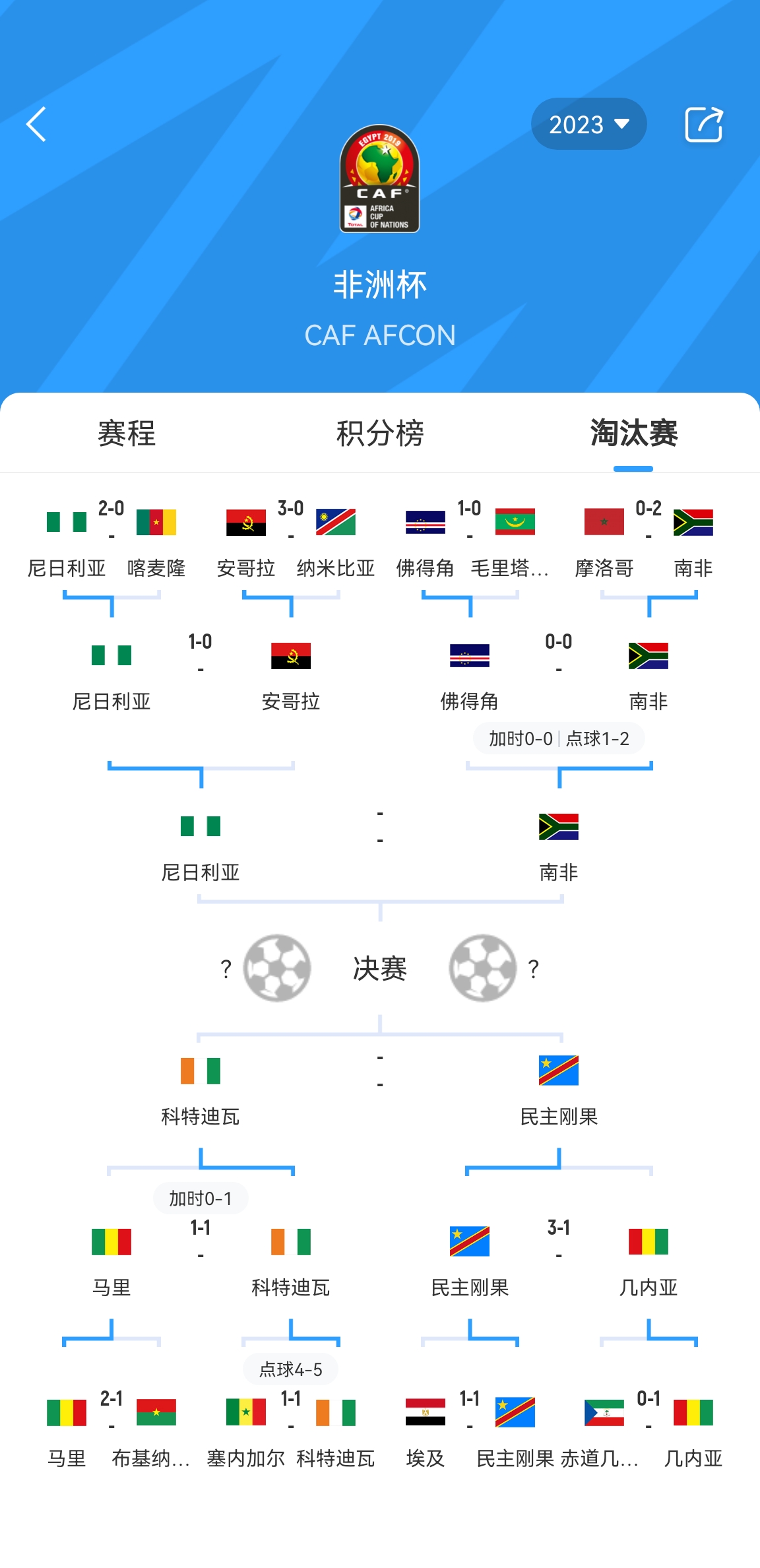 半决赛对阵出炉,科特迪瓦vs民主刚果,尼日利亚vs南非。