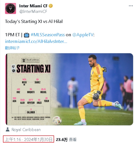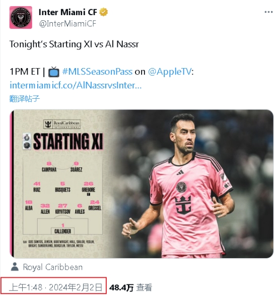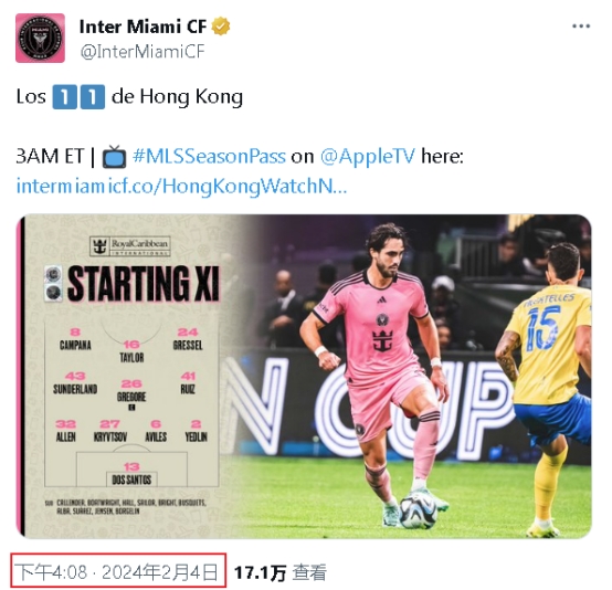 有玄机❓迈阿密首发公布&开球时间对比:对中国香港明星队最迟