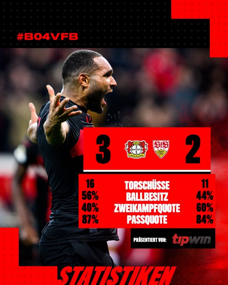 2月7日讯 今晨结束的德国杯1/4决赛,勒沃库森3-2逆转绝杀斯图加特。
