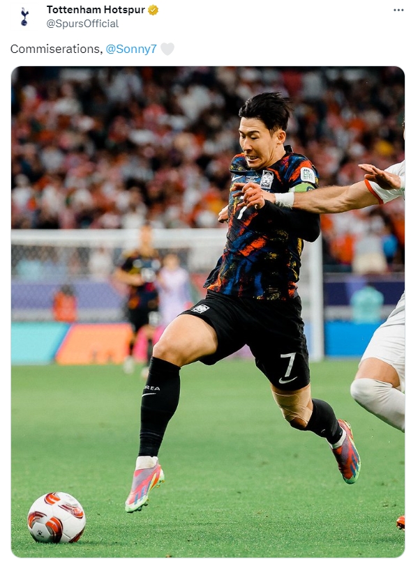 韩国遭约旦淘汰,热刺安慰孙兴慜:同情你,Sonny