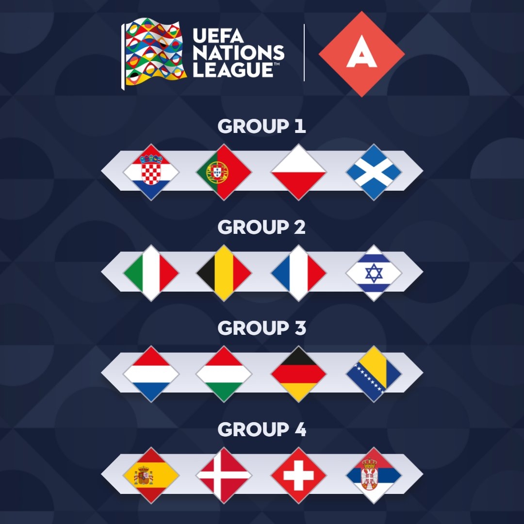 欧国联分组抽签:意大利、比利时、法国同组 英格兰掉入B级别