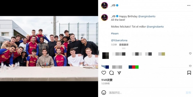 罗贝托32岁生日,莱万晒巴萨合照送祝福