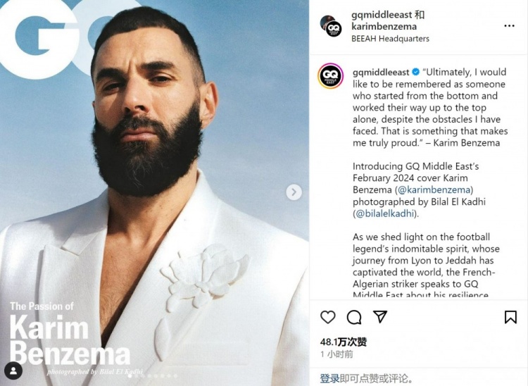 此外,本泽马也登上了时尚杂志《GQ》中东版二月刊的封面,并接受了GQ的专访,谈到了自己的心路历程,以及在沙特的生活。