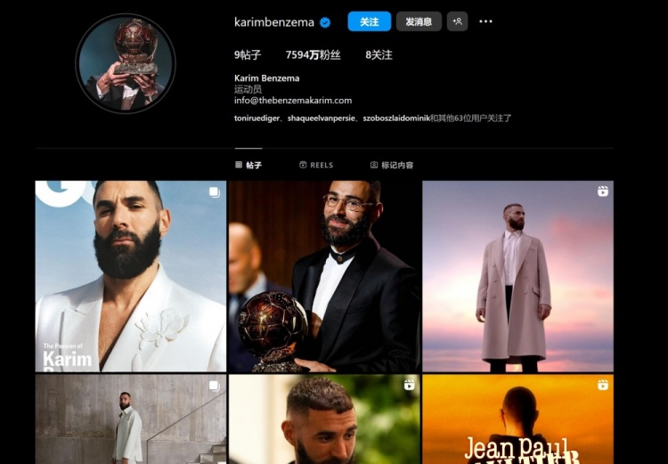 本泽马重新启用Ins,去年年底曾暂时关闭账号