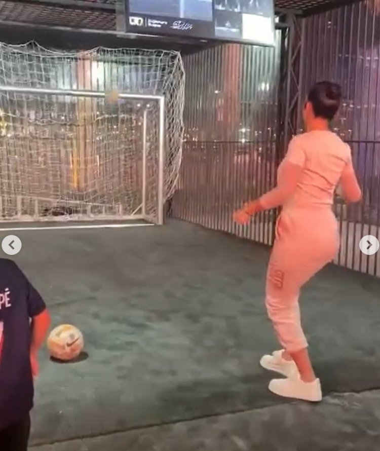 此外,乔治娜也和迷你罗等人一起进行了射门练习,不过她最终击中了横梁。