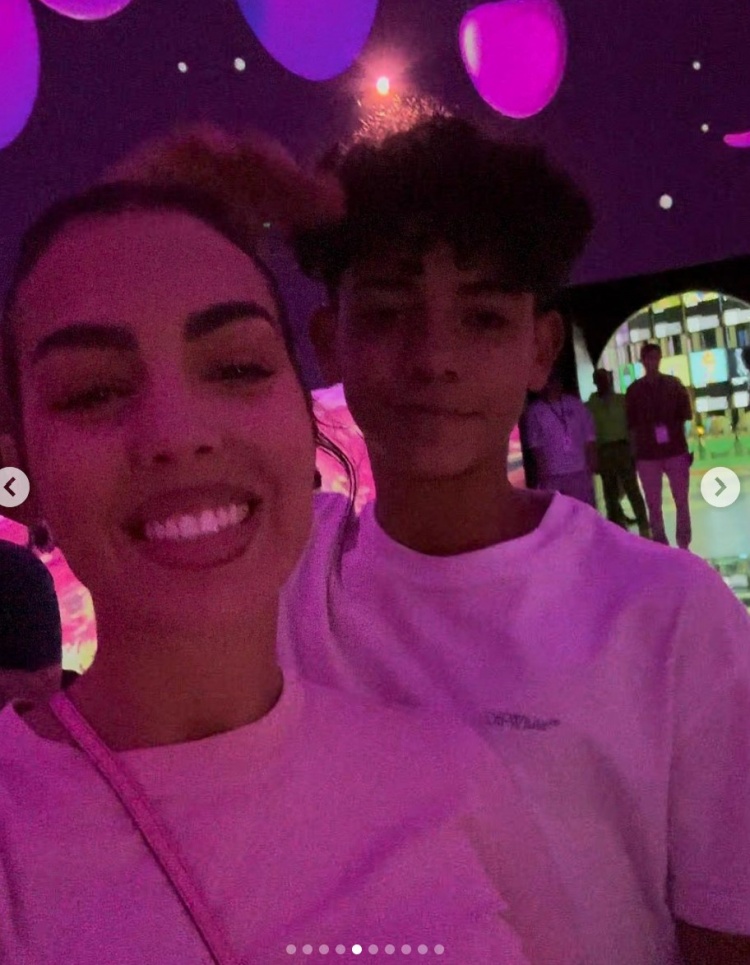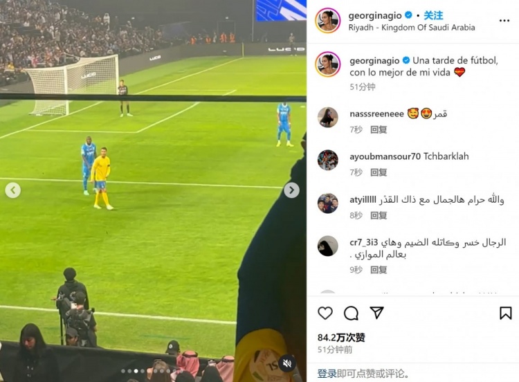 在动态中,乔治娜带着孩子们一起观战了利雅得胜利对阵新月的友谊赛,乔治娜还为C罗拍摄了特写镜头。