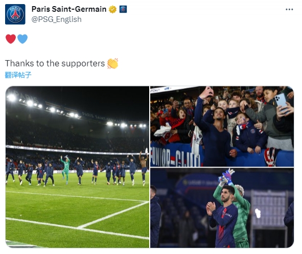 3-1逆转!巴黎官推感谢主场球迷❤️埃梅里与小球迷自拍