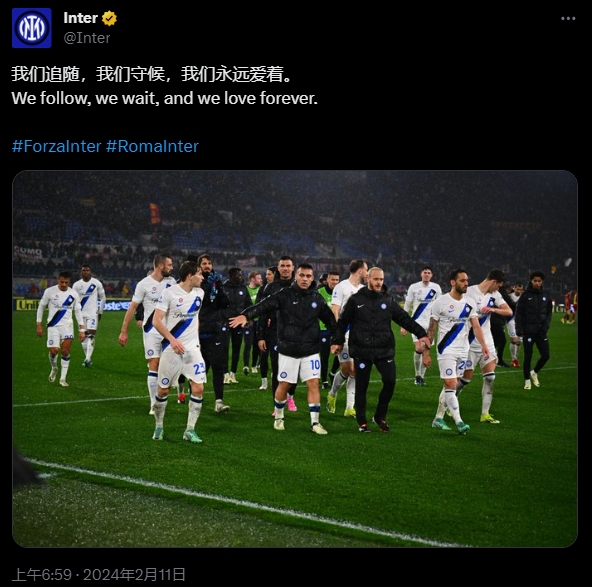 战胜罗马!国米中文发推:我们追随,我们守候,我们永远爱着