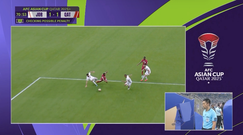 马宁第三次判给卡塔尔点球!约旦门将染黄↓