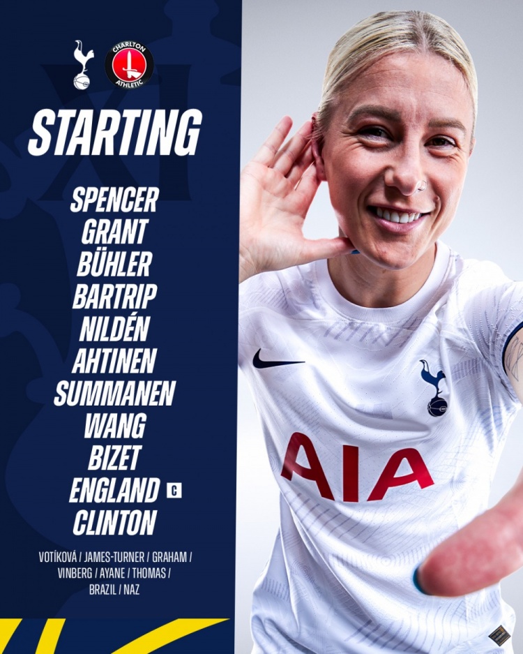 王霜首发!女足足总杯热刺vs查尔顿,王霜连场首发