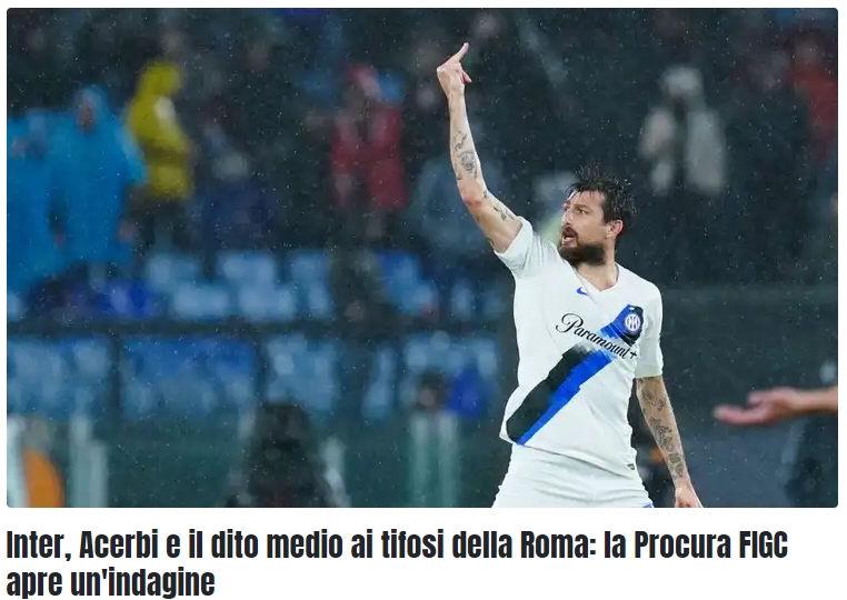 2月12日讯 本轮意甲国米4-2客胜罗马。此役国米后卫阿切尔比在比赛中朝罗马球迷竖起了中指,这一幕最初没有被转播镜头捕捉到,但在赛后被发现。《米兰体育报》