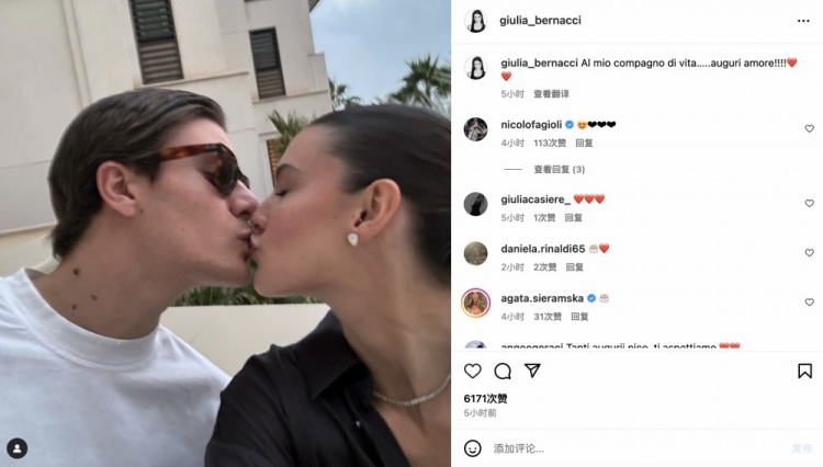 2月13日讯 尤文球员法乔利迎来23岁生日,其女友在社交媒体晒出甜蜜接吻照送上祝福。