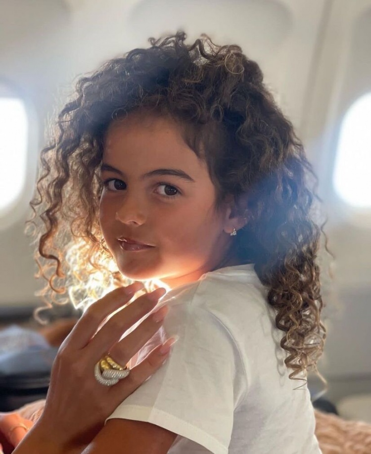 此外,C罗也牵着女儿贝拉的手,一家人一起逛街。