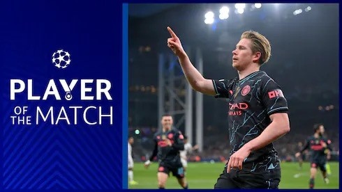 德布劳内赛后当选欧冠官方评选的本场最佳球员,他在比赛第10分钟接福登助攻破门,并在第45分钟助攻B席破门。球队第三个进球也是德布劳内创造出来的机会。