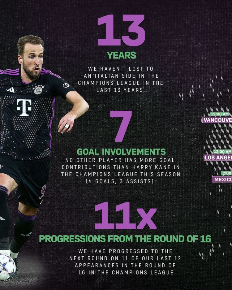 2、过去13年,拜仁从未在欧冠比赛中输给过意大利球队