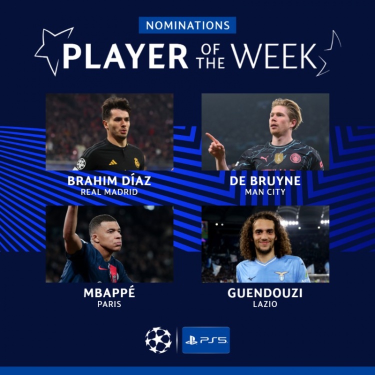 2月15日讯 本周四场欧冠1/8决赛首回合比赛战罢,欧冠官方列出了最佳球员的候选名单。本周欧冠最佳球员候选:迪亚斯(皇马)——打进1球,跑动距离10.36公里,传球成功