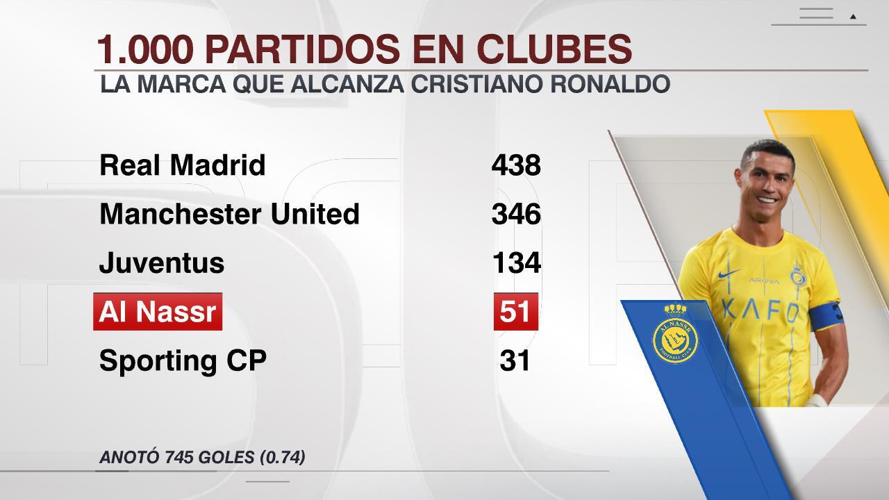 里程碑✊C罗达成俱乐部1000场成就,此前共打进745球