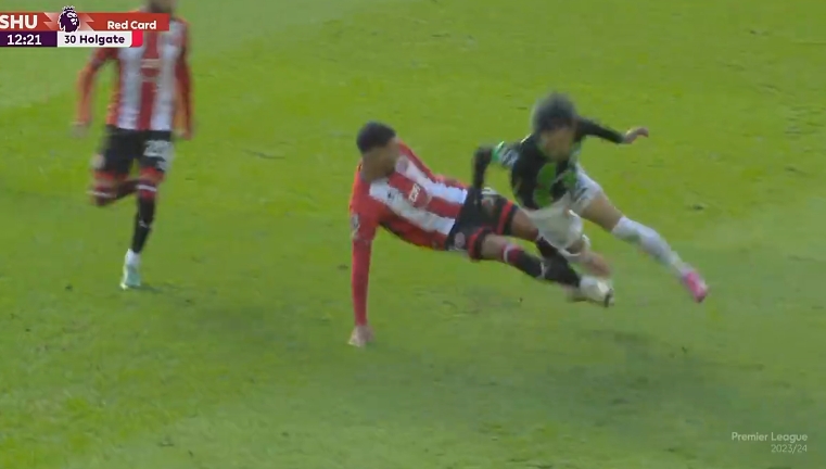2月19日讯 英超第25轮,布莱顿客场5-0大胜谢菲联。开场不久,谢菲联后卫霍尔盖特爆铲三笘薫犯规,主裁判观看VAR后出示红牌将霍尔盖特罚下。这一动作遭到了各方痛批。