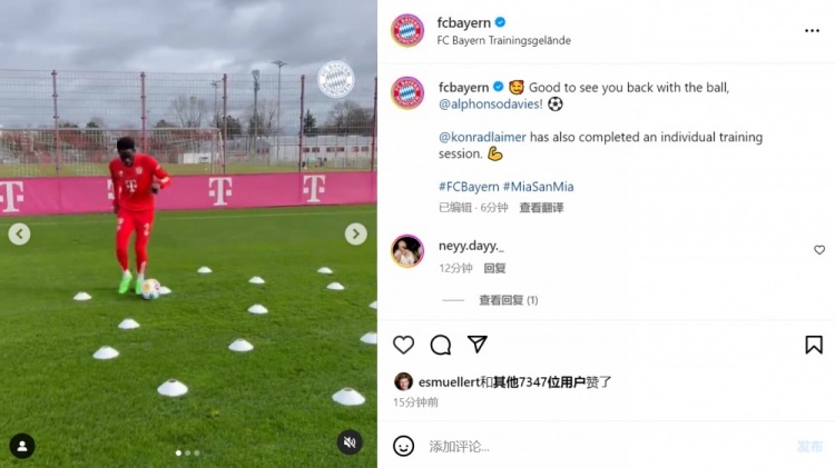现年23岁的阿方索-戴维斯在2月3日对阵门兴的比赛中左膝内侧副韧带扭伤,拜仁官方今天晒出阿方索-戴维斯进行有球训练的照片和视频。