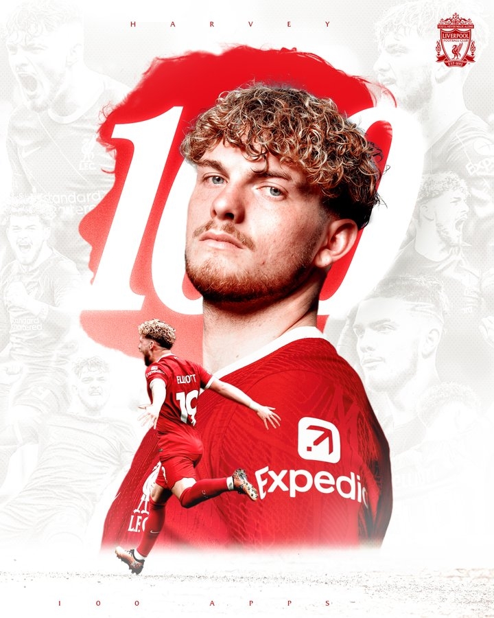 埃利奥特是达成红军100场第4年轻球员,仅次于欧文、斯特林和福勒