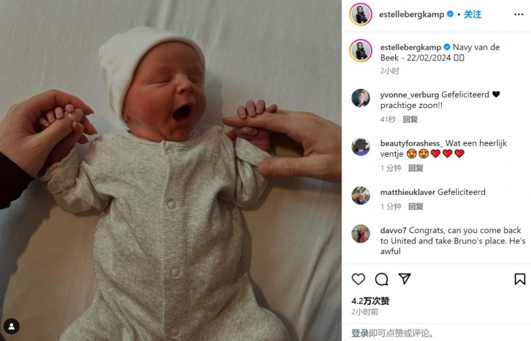 2月25日讯 昨天,范德贝克和妻子Estellee迎来了两人的第二个孩子。两人在社交媒体上表示,小宝宝出生于2024年2月22日,并为他取名叫内维(Navy)。范德贝克的妻子比