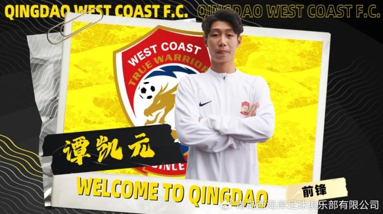 青岛西海岸官方写道:“谭凯元,出生于2001年8月19日,籍贯山东青岛,司职前锋,出道于广州恒大足校青训。曾赴恒大西班牙足校锻炼,留洋期间效力于西班牙人B队,多次入选国字号球队。