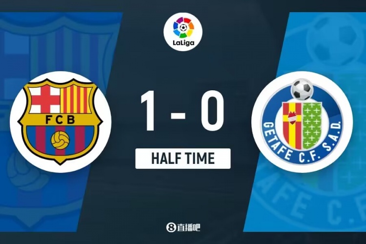上半场比赛结束,巴塞罗那1-0赫塔费。