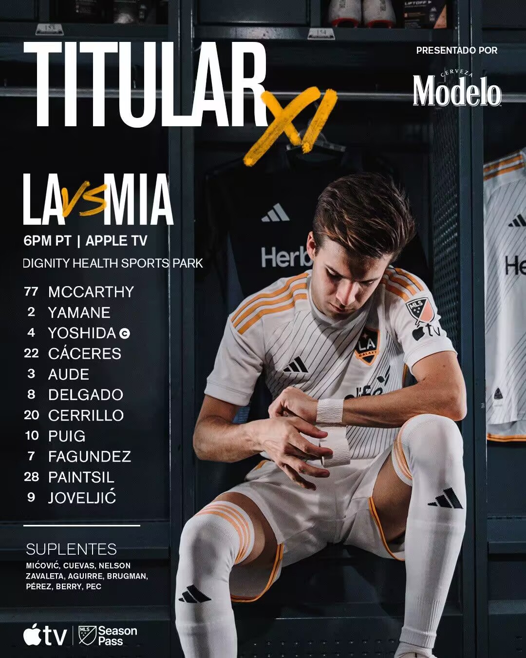 迈阿密vs洛杉矶银河首发:梅西、苏亚雷斯先发,吉田麻也出战