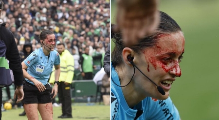满脸是血西甲女裁判与摄像机相撞,随后被担架抬走