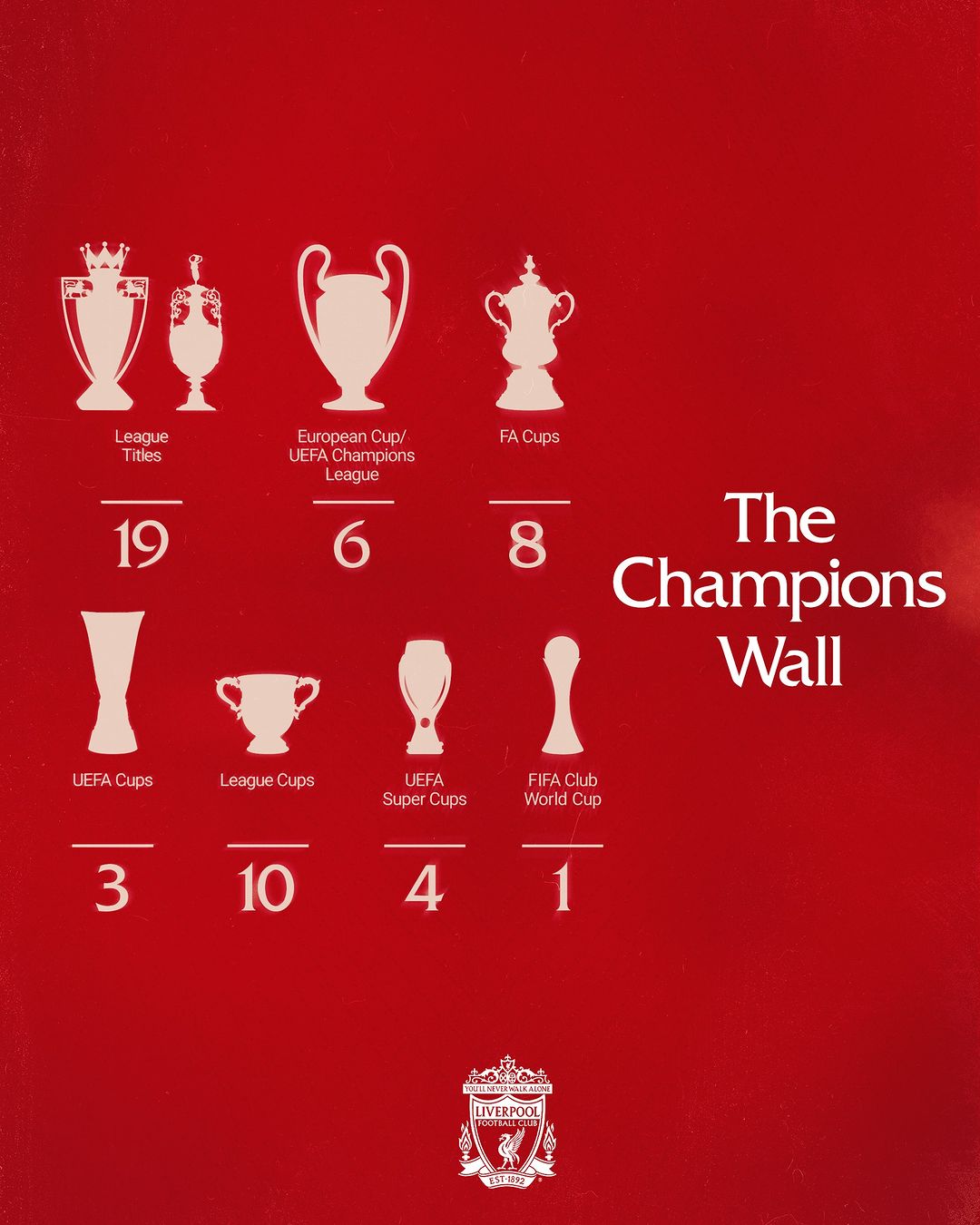 联赛杯冠军+1利物浦官方晒荣誉墙:是时候更新了