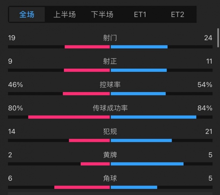 切尔西0-1利物浦全场数据:射门19-24,犯规14-21,黄牌2-5