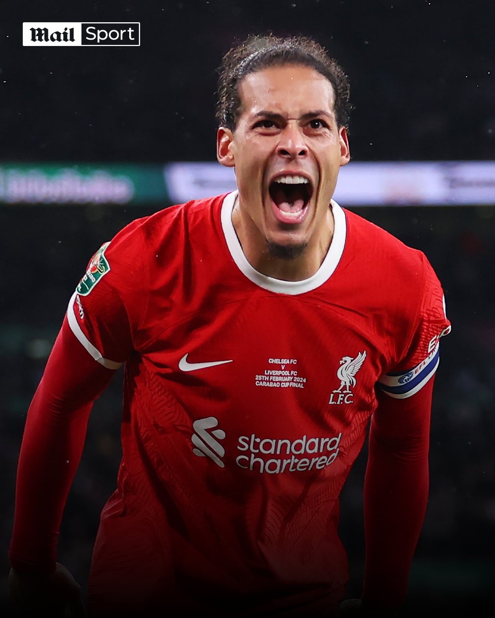 2月26日讯 联赛杯决赛,利物浦1-0击败切尔西捧杯,范迪克打入制胜绝杀!英超名宿莱因克尔在社媒盛赞范迪克:“他是绝对的老大@范迪克”范迪克制胜球↓