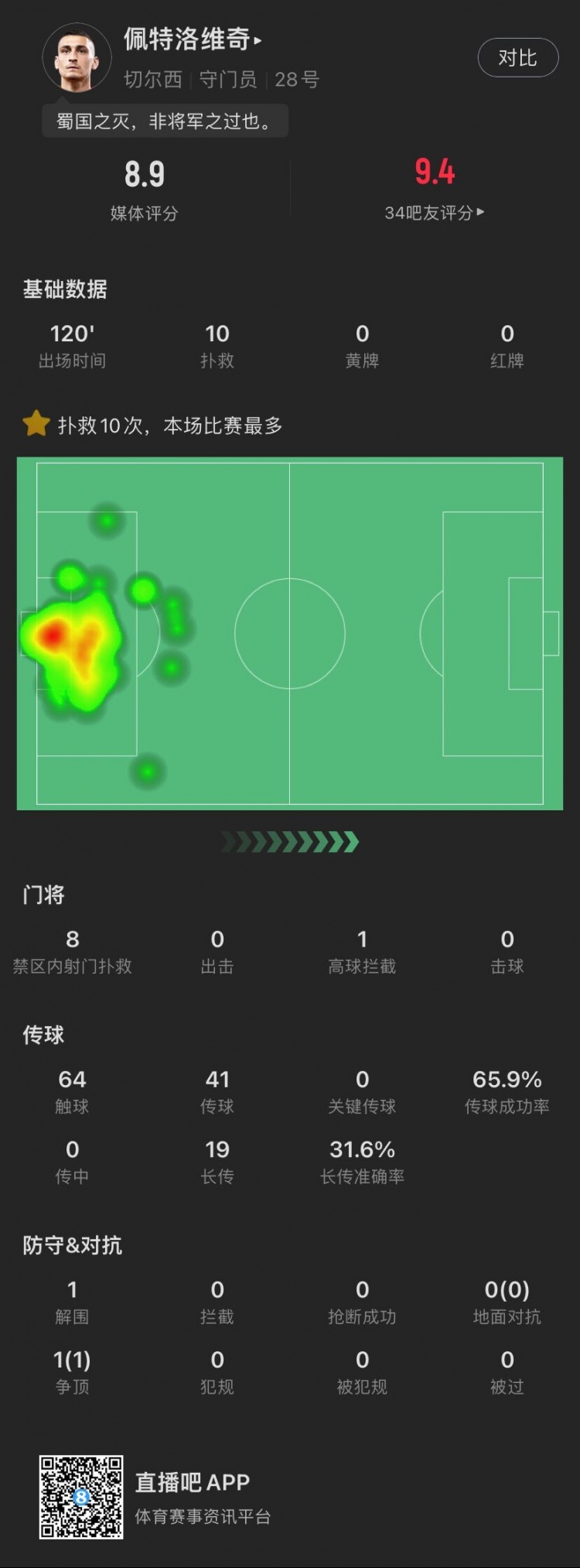 尽力局!佩特洛维奇本场:10次扑救丢1球,获评8.9分仅次于凯莱赫