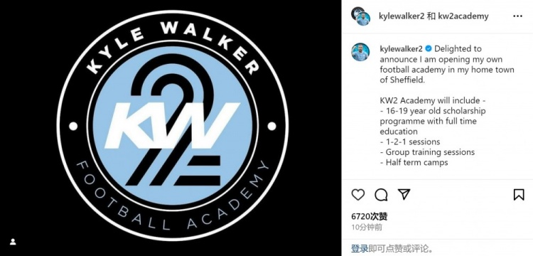 2月27日讯 33岁的曼城队长沃克宣布,自己在家乡谢菲尔德成立了一家青训学校KW2。沃克表示,自己的青训学校将为16-19岁的年轻球员们提供奖学金,且会提供全日制